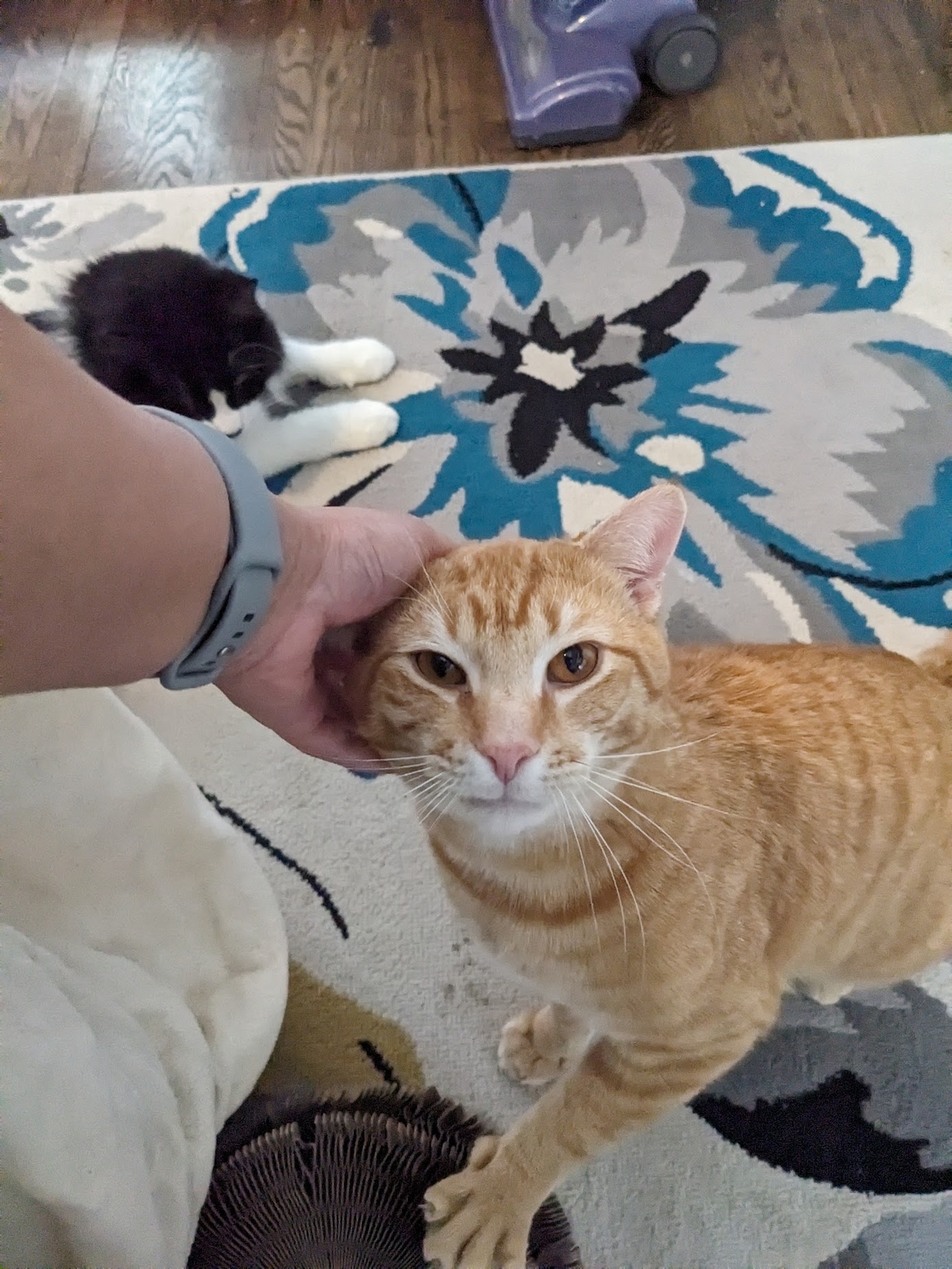While EJ hasn’t yet been tested with dogs or children, his friendly, steady, and unflappable temperament suggests he would likely adjust well to respectful, cat-savvy kids or dogs with proper introductions. He’s the kind of cat who wants to be part of the action — involved, engaged, and included in daily life.